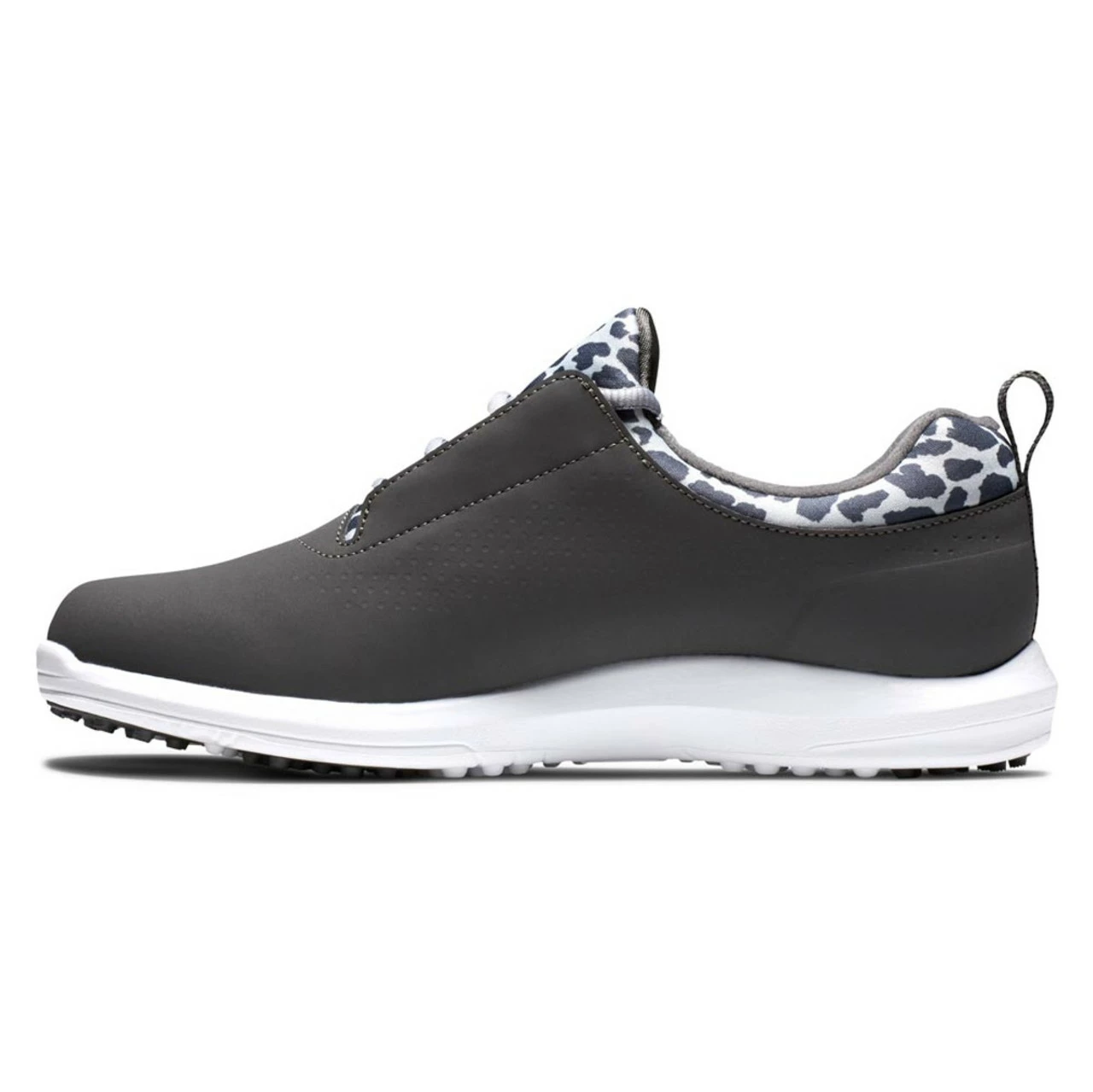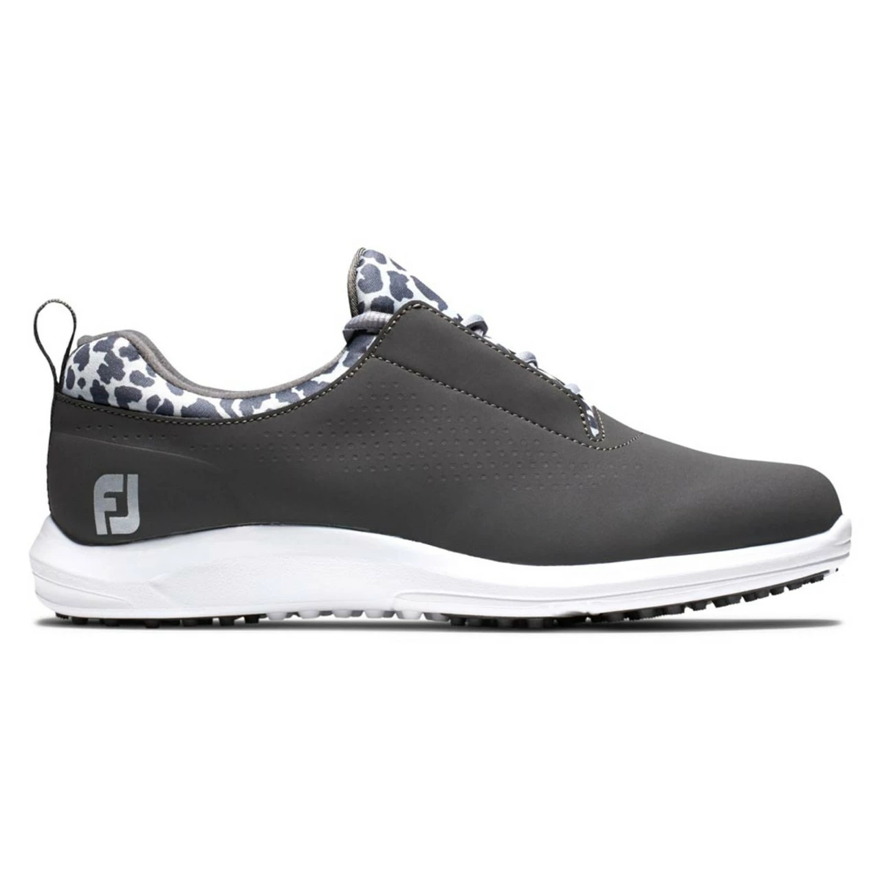 Get the perfect combination of style and technology in an athletic inspired silhouette with the FootJoy Women’s Leisure Golf Shoes. Featuring a soft and comfortable synthetic upper and a DuraMax rubber outsole with versatile traction, the Women’s Leisure Golf Shoes provide all the necessary comfort and stability necessary for the course. The waterproof upper keeps your feet dry in wet or damp weather conditions.