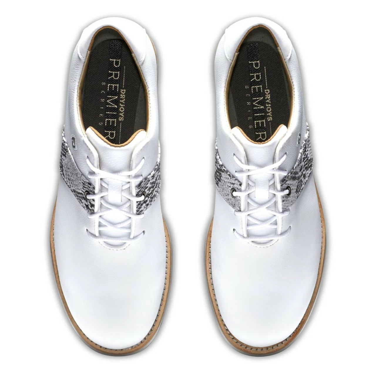 The Premiere Series Women’s Shoe possesses a full-rounded toe character, standard forefoot and instep with a slightly narrow heel. The Women’s Premiere Series also features a waterproof Pittard’s leather upper with modern interpretations of classic style. Equipped with Pulsar Low Profile cleats by Softspikes, the Premiere Series Shoe ensures maximum grip during your swing. Additionally, the Women’s Premiere Series has soft, supple sheepskin lining for comfort throughout your entire round.