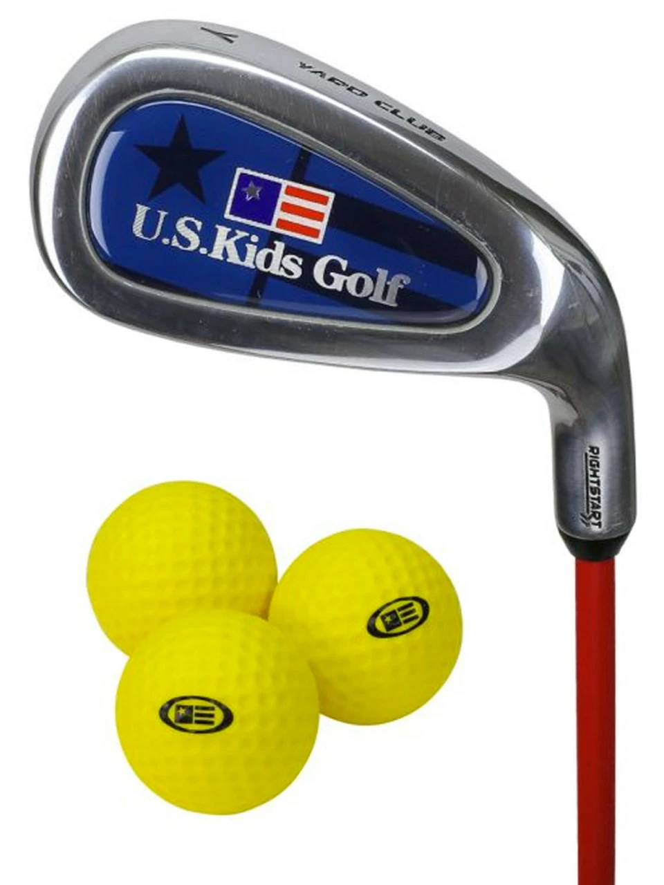 Buy US Kids Golf RS39 Yard Club online at GolfBox. Moulded training grip. 3 soft limited-flight Yard Balls. Lightweight Y-flex composite shaft. 23″ finished club length